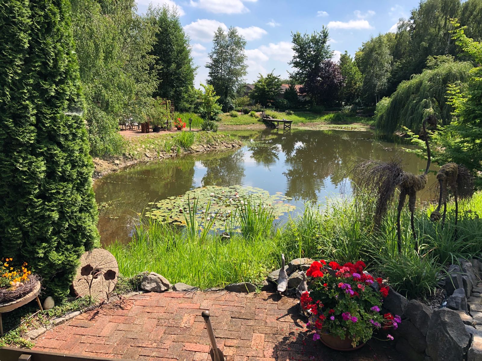 Das Ziel war der schöne Garten der Familie Meier / Müller. Dort hielten wir unsere Kaffeepause ab. Einen Aufenthalt von 1,5 Stunden hatten wir geplant und wir können nur sagen, den brauchten wir auch. Was es dort zu sehen gab! Einfach toll. Ob Traktoren, Tiere, einen großen Teich, etliche gemütliche Ecken zum „chillen“, es war wirklich für jeden etwas dabei.