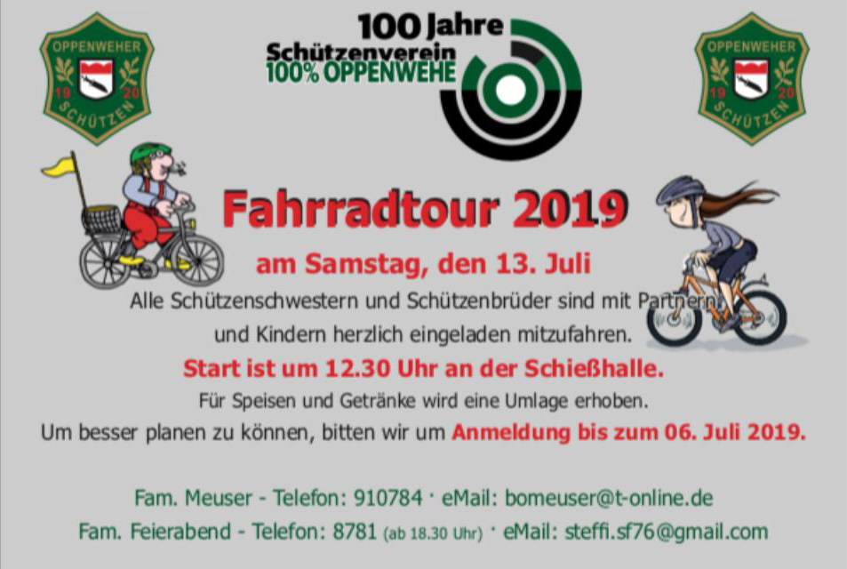 Die Fahrradtour wird auch in 2019 ein fester Termin im Jahresplan des SV Oppenwehe sein. Laßt Euch überraschen, wohin es dann geht….…….es wird spannend.