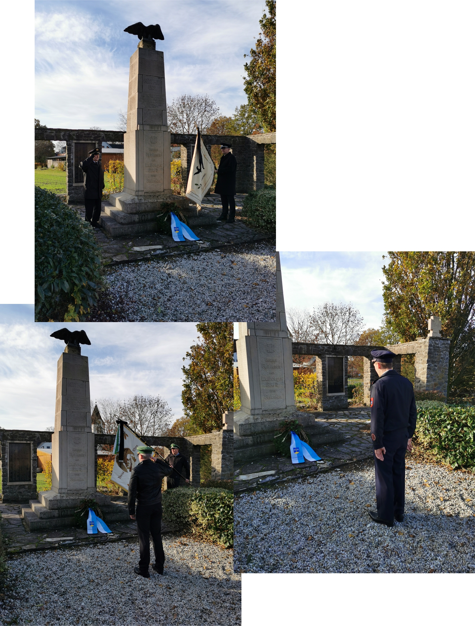 In Oppenwehe haben einige Vereine nach vorheriger zeitlicher Absprache und unter Einhaltung der aktuell geltenden Kontaktbeschränkungen den Opfern der Weltkriege gedacht. Die sehr kleinen Abordnungen der Vereine ließen es sich nicht nehmen, das Oppenweher Kriegerdenkmal am Volkstrauertag (Sonntag, 15.11.2020) zu besuchen. Trotz der aktuell schwierigen Zeiten sollte dies eine angemessene Geste sein, den Verstorbenen Respekt zu erweisen.